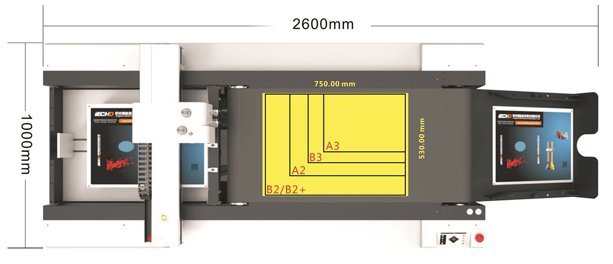 Zintegrowana konstrukcja – wspawana rama maszyny zapewnia stabilność, ploter posiada ergonomiczną konstrukcję, estetyczną obudowę i mały rozmiar – modele iEcho PK0604 i PK0705 zajmują nie więcej niż 2m2