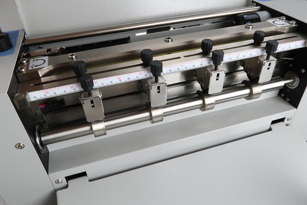 - Wymienne listwy – różne szerokości bigowania do różnych gramatur oraz możliwość perforacji (12/24 TPI)