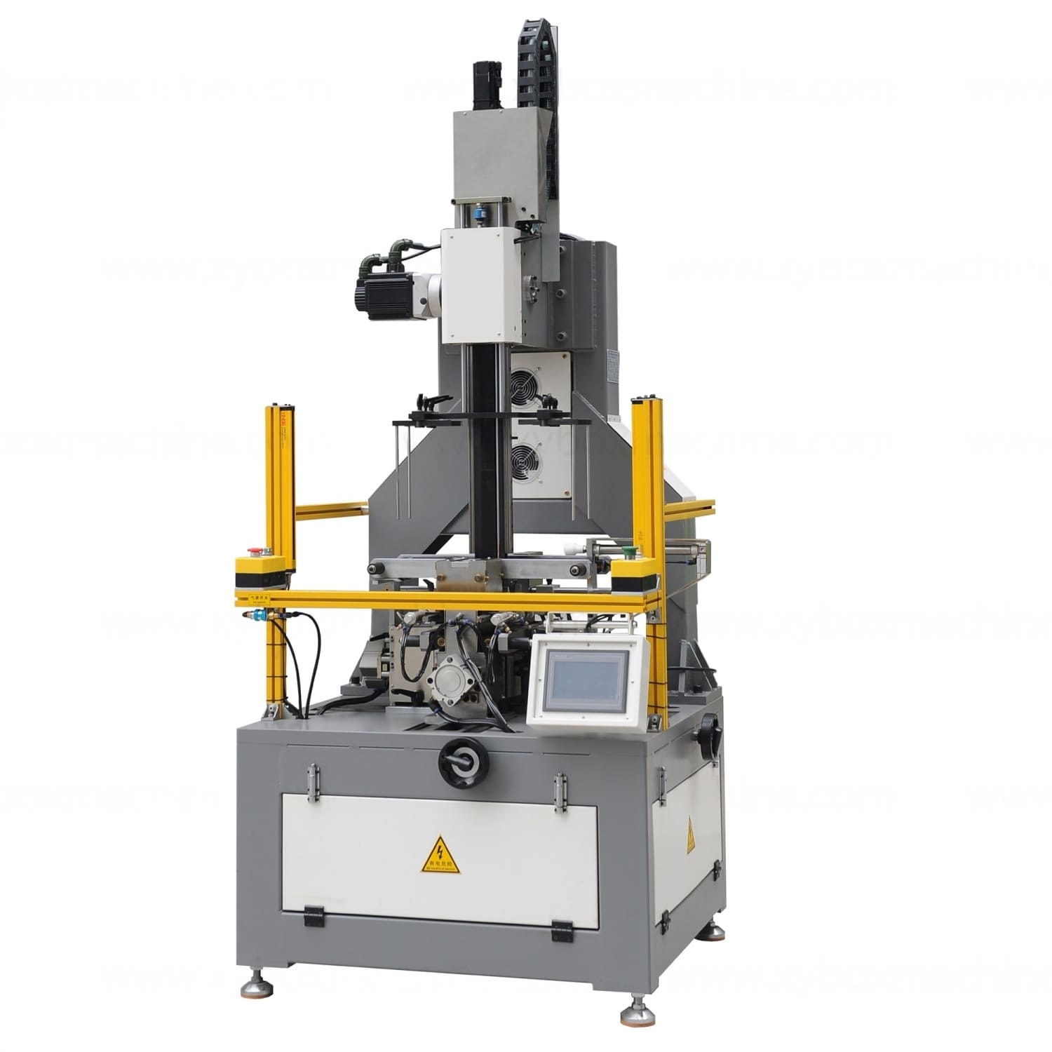Maszyna wykorzystuje zaawansowany programowalny kontroler PLC do interakcji z operatorem, co ułatwia obsługę. Sześć serwonapędów odpowiada za kontrolę procesu formowania, zapewniając stabilność i trwałość operacji. Dodatkowo maszyna jest wyposażona w funkcję automatycznej diagnostyki błędów oraz alarmy, co zwiększa bezpieczeństwo użytkowania.