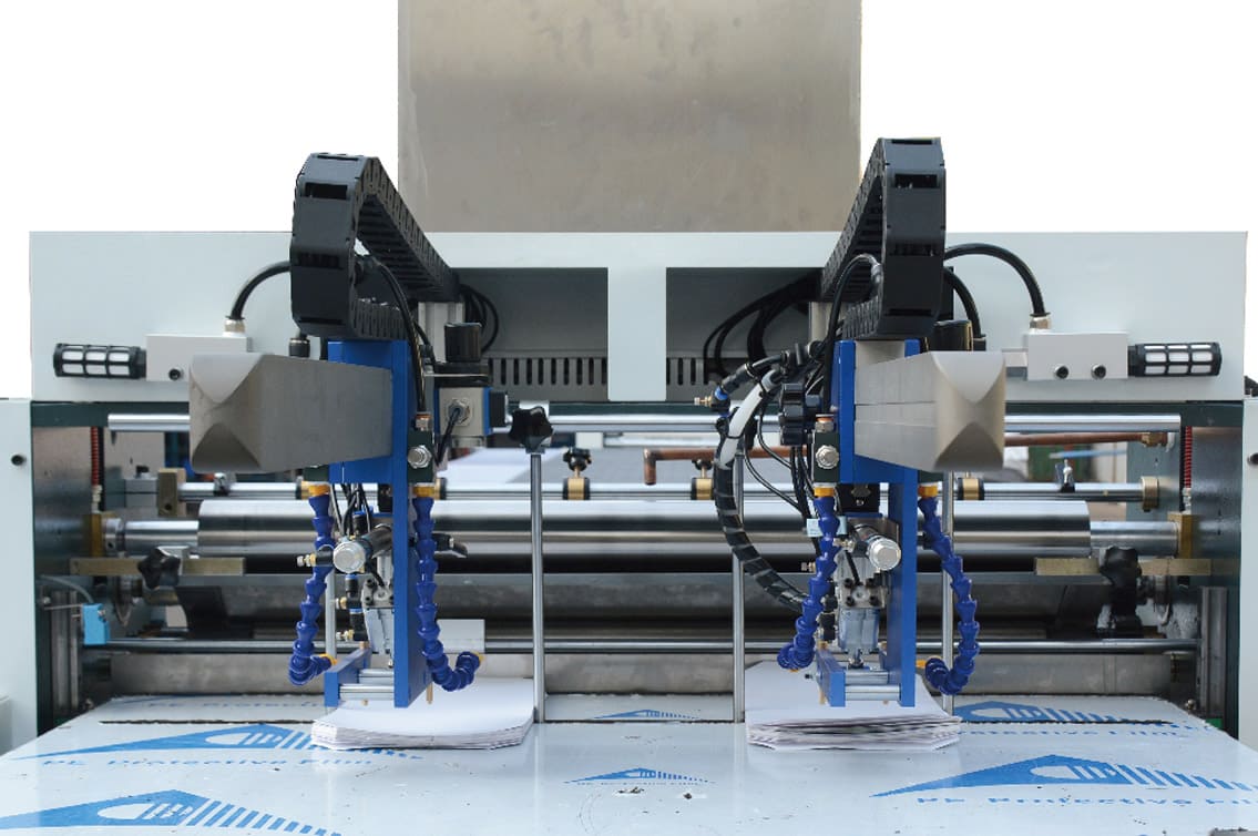 Podwójny podajnik – zwiększona wydajność dzięki jednoczesnemu klejeniu po obu stronach, umożliwiająca produkcję do 40 szt./min.