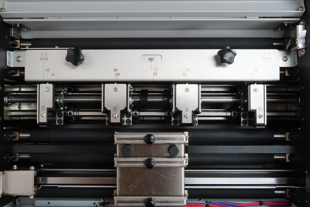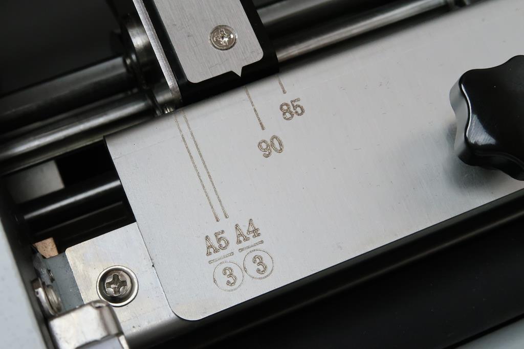 Wycinarka do wizytówek Ausjetech Mini SC z funkcją bigowania i z możliwością zmiany rozmiaru wycinanego materiału.